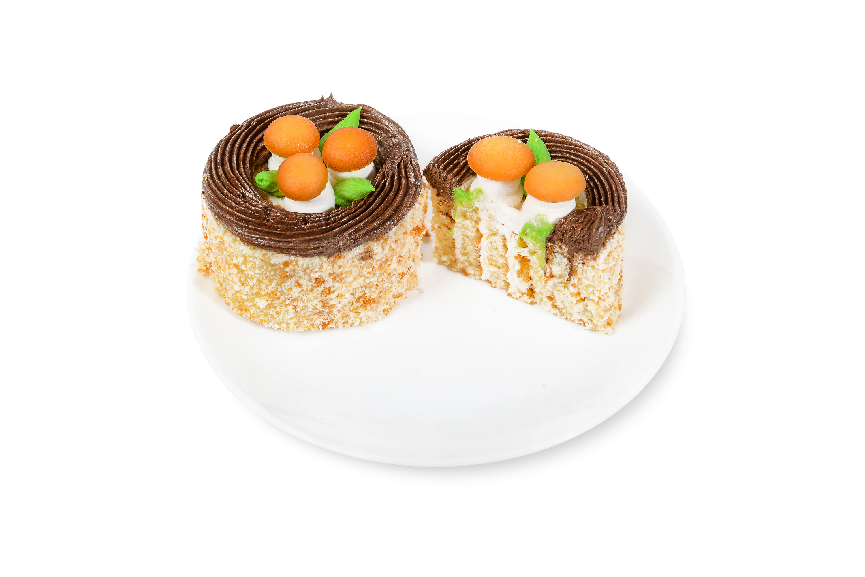 Нежные бисквиты с прослойкой из сливочно-масляного крема, на поверхности кремовые грибочки с бисквитной шляпкой