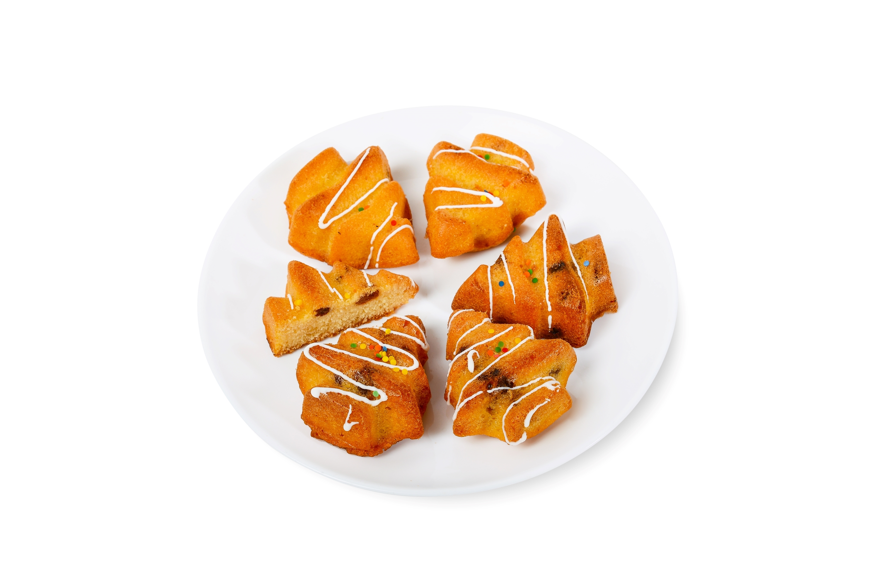 Сдобное печенье с изюмом с тонким ванильным ароматом, поверхность декорирована белой глазурью и разноцветной сахарной посыпкой