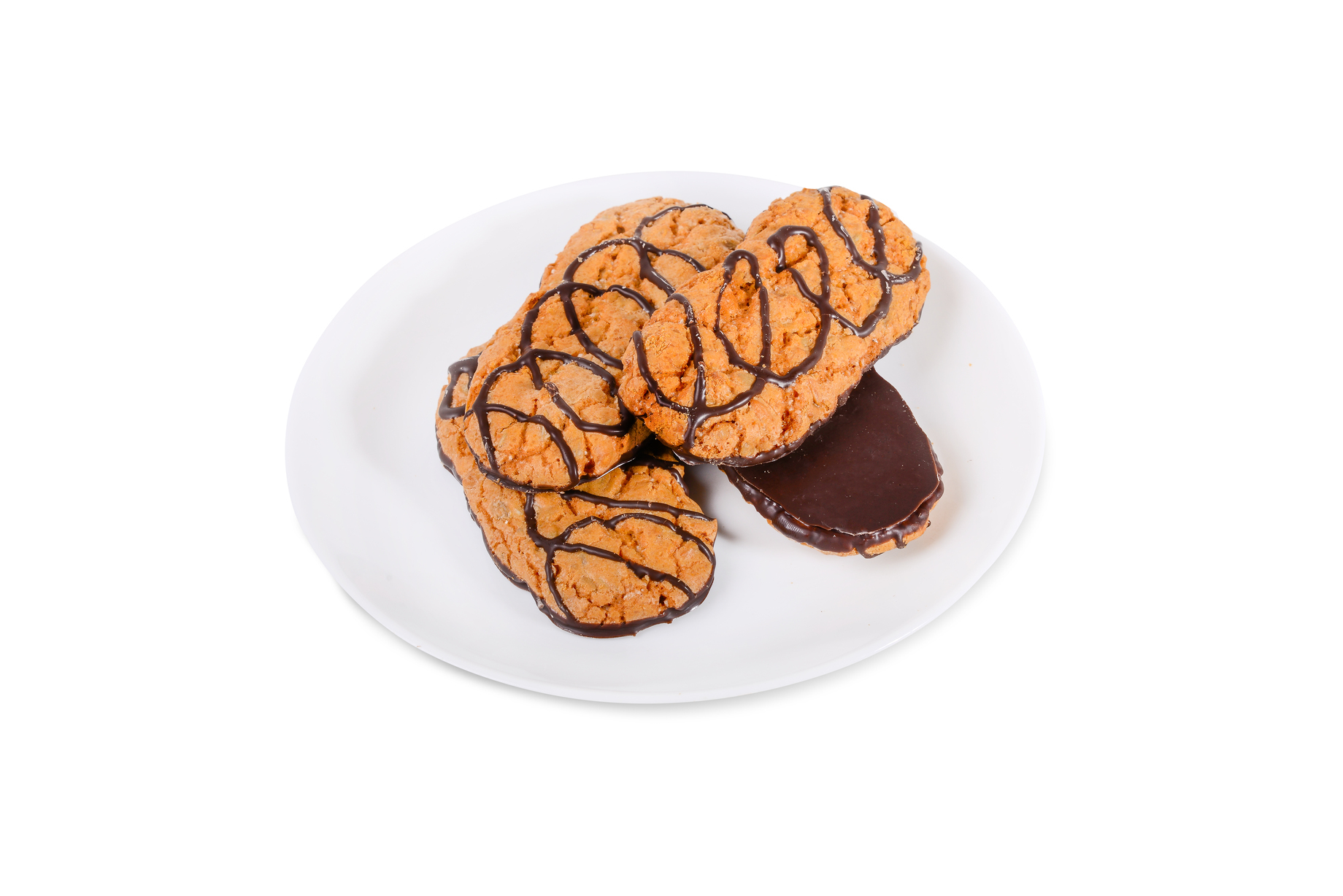 Сдобное печенье с семенами подсолнечника, покрытое шоколадной глазурью и декорировано темным шоколадом